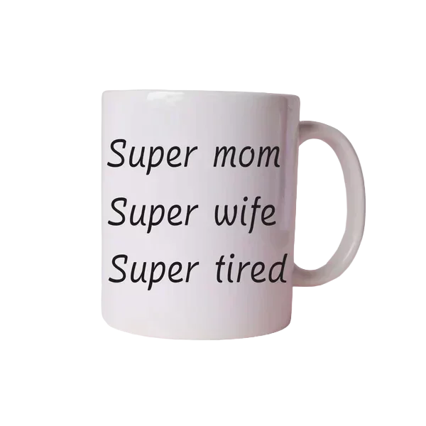 Mok met text ' Super mom - Super wife - Super tired ' Inhoud 32cl
